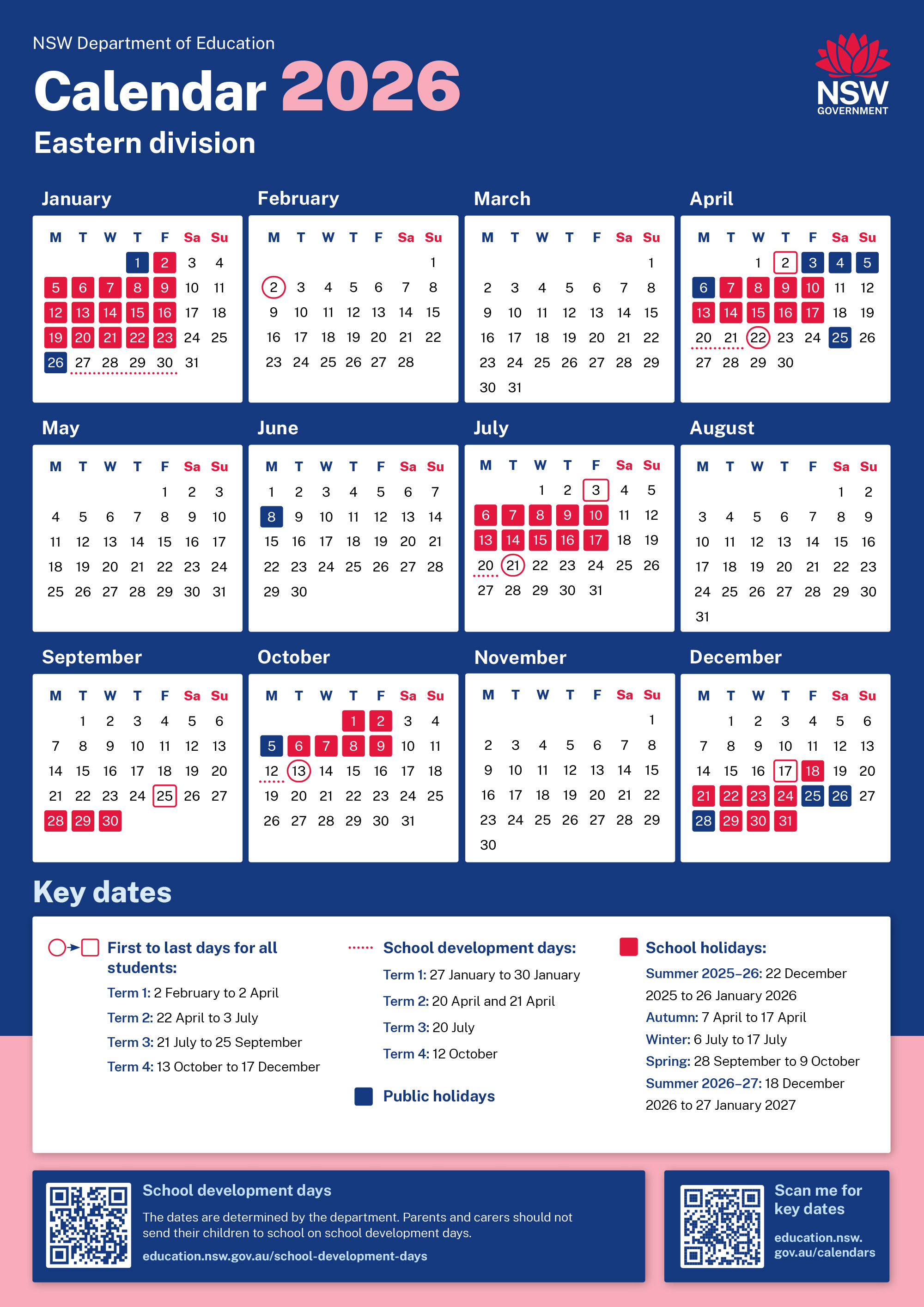 (Except Public holidays / Xmas Break)